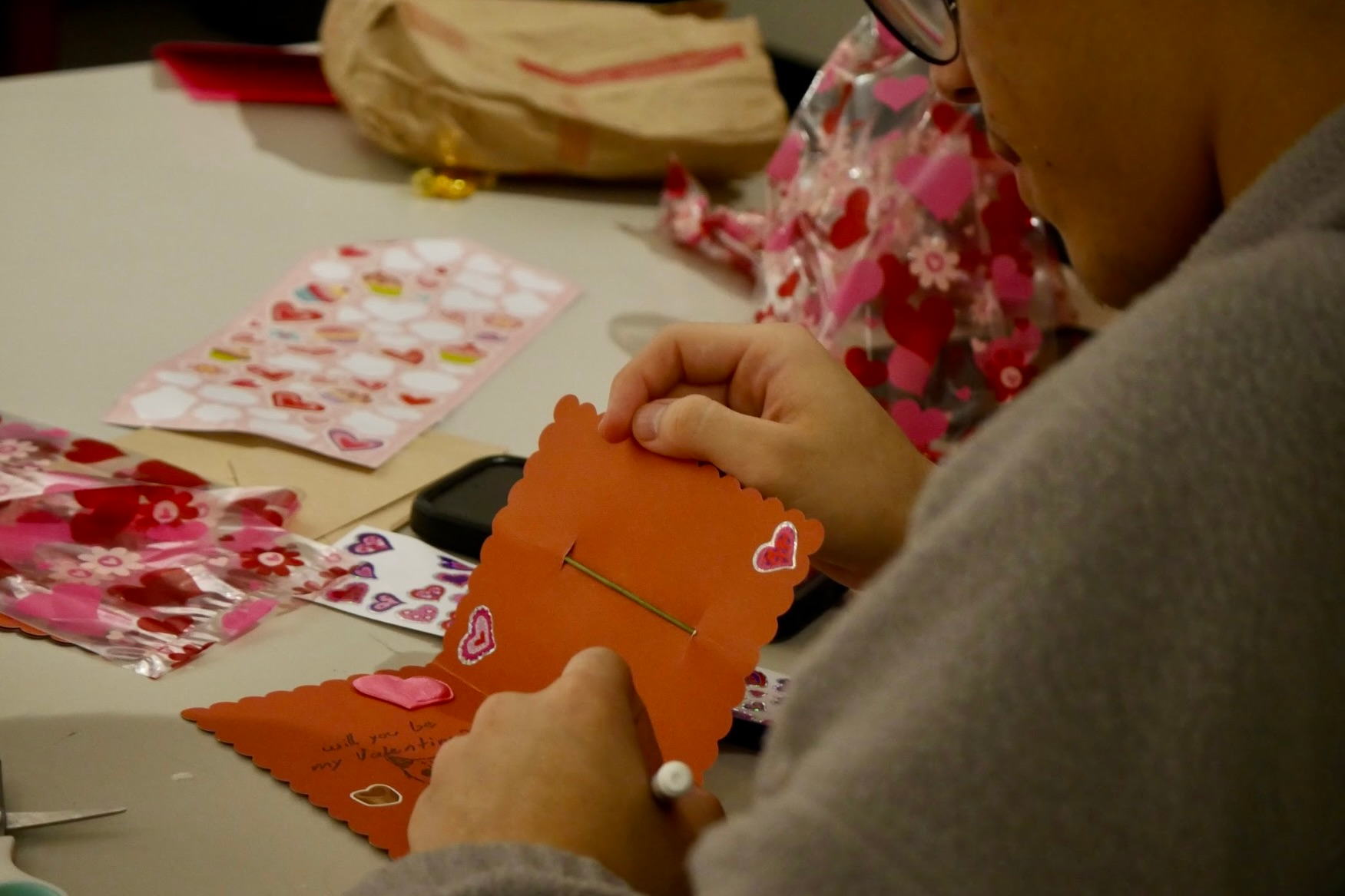 Arts student Arthur Tensfeld captured hand-crafting a card during an Art History Undergraduate Society’s Valentine’s Day-themed event. [Photo by Itoro Umanah/the Charlatan]