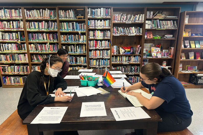 Organizer Jocelyn Deng joins participants in writing letters. Deng said she was inspired by past letter writing events to host this one on Nov. 18, 2025 to commemorate the Transgender Day of Remembrance. [Photo by Zayn Daureeawoo/the Charlatan]