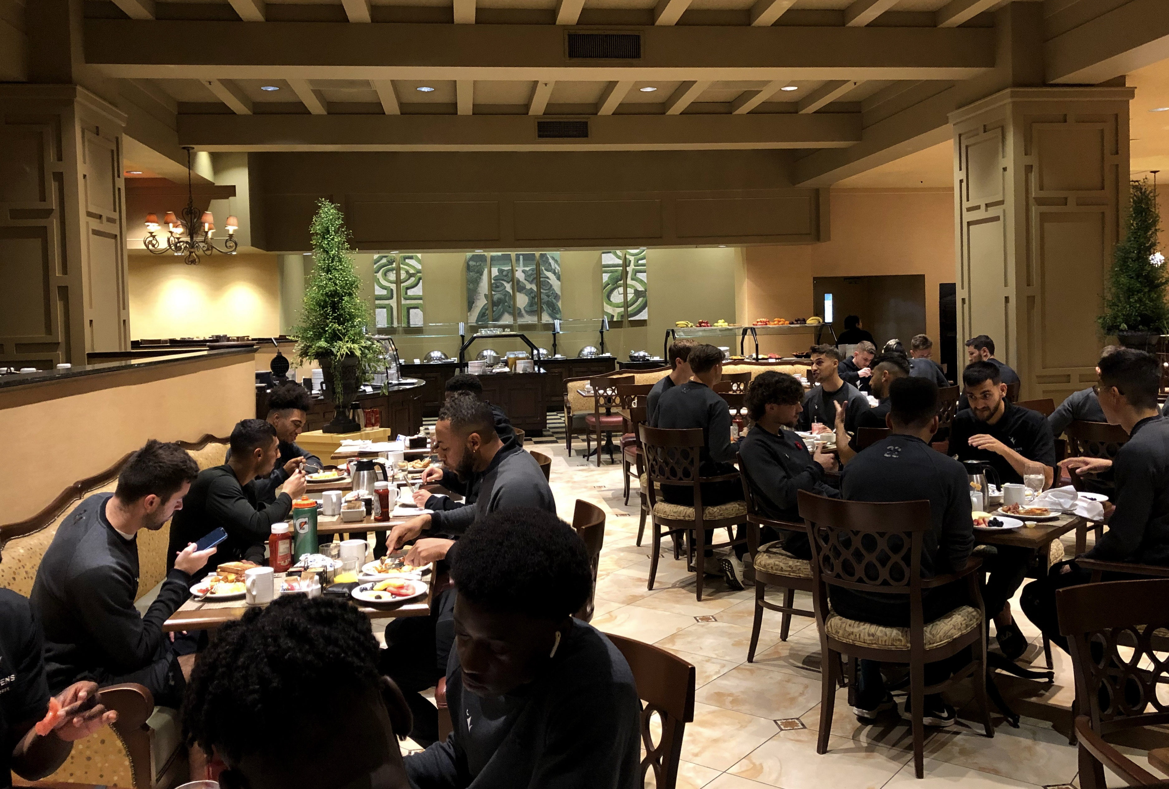 But the schedule the next morning was strict. A 6 a.m. wake up call was followed by a team breakfast 30 minutes later and the players arrived to indulge in a full buffet spread.