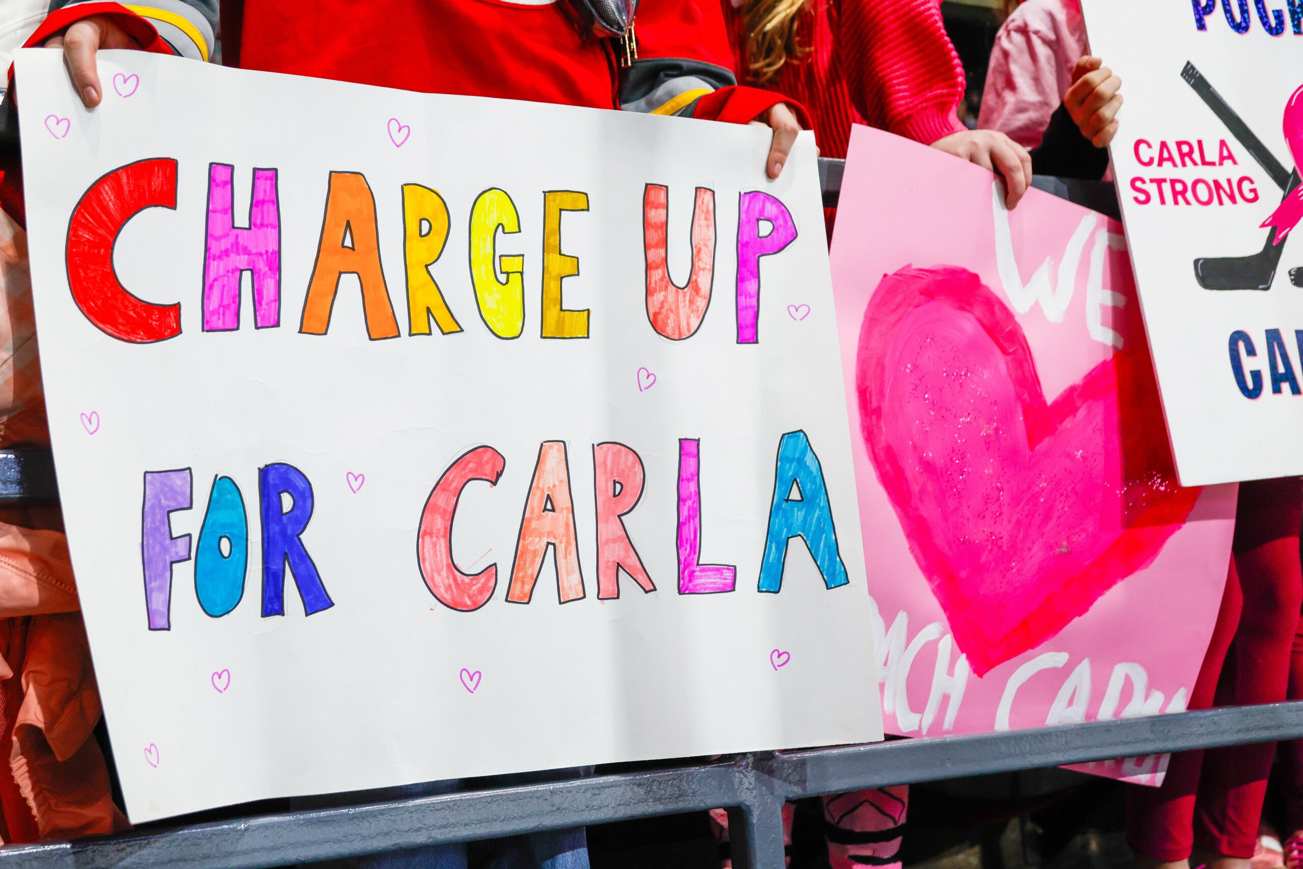 Signs with messages like, “Charge up for Carla” and “Puck Cancer” were on full display as part of a Charge engagement campaign.