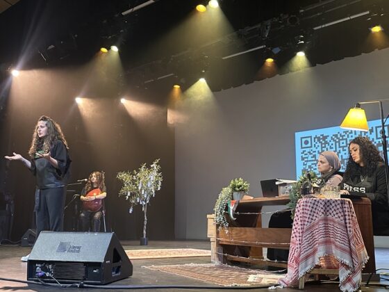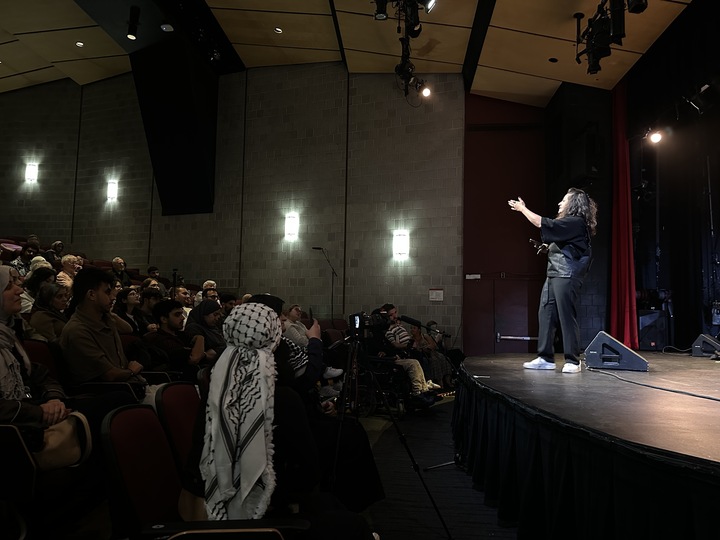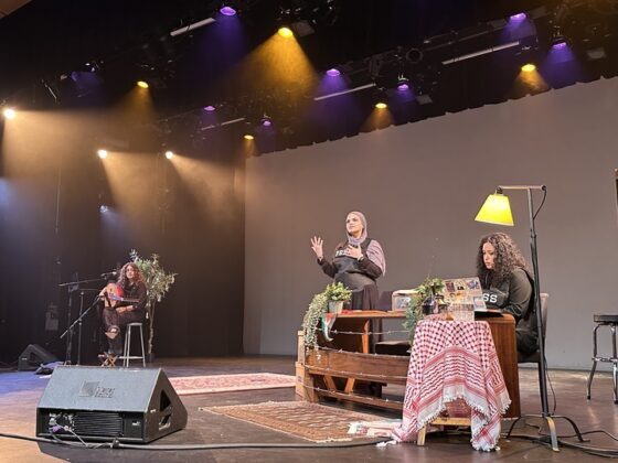 Between documentary clips and El-Kholy and Hashem’s narratives, musician Mariam Shak’a played the oud and sang traditional Palestinian folk songs, including “Yumma Mwel El Hawa.”
