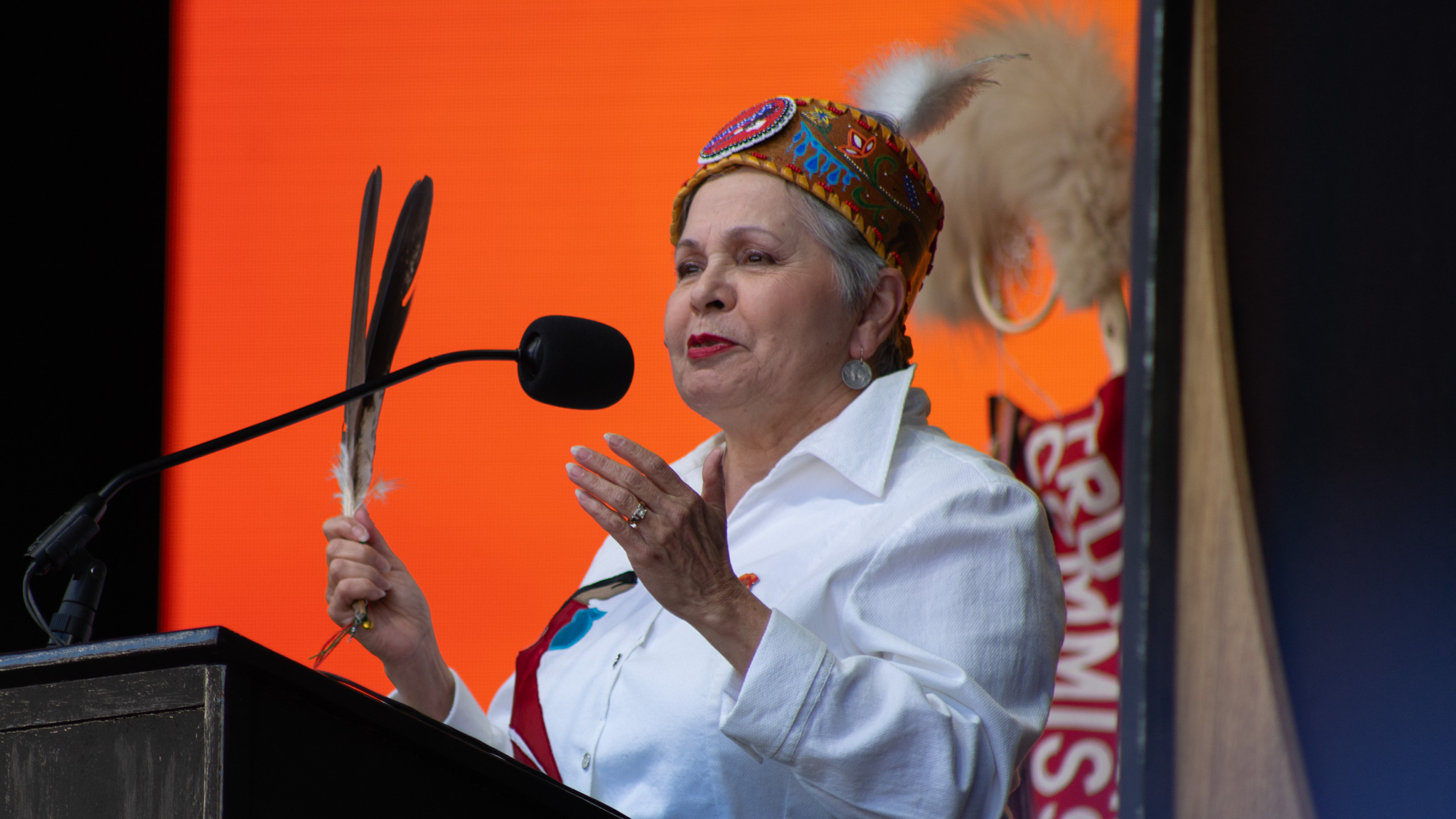 “Truth is the foundation of justice,” Carney told the crowd. “And the truth is, for more than a century, this country ran residential schools.”